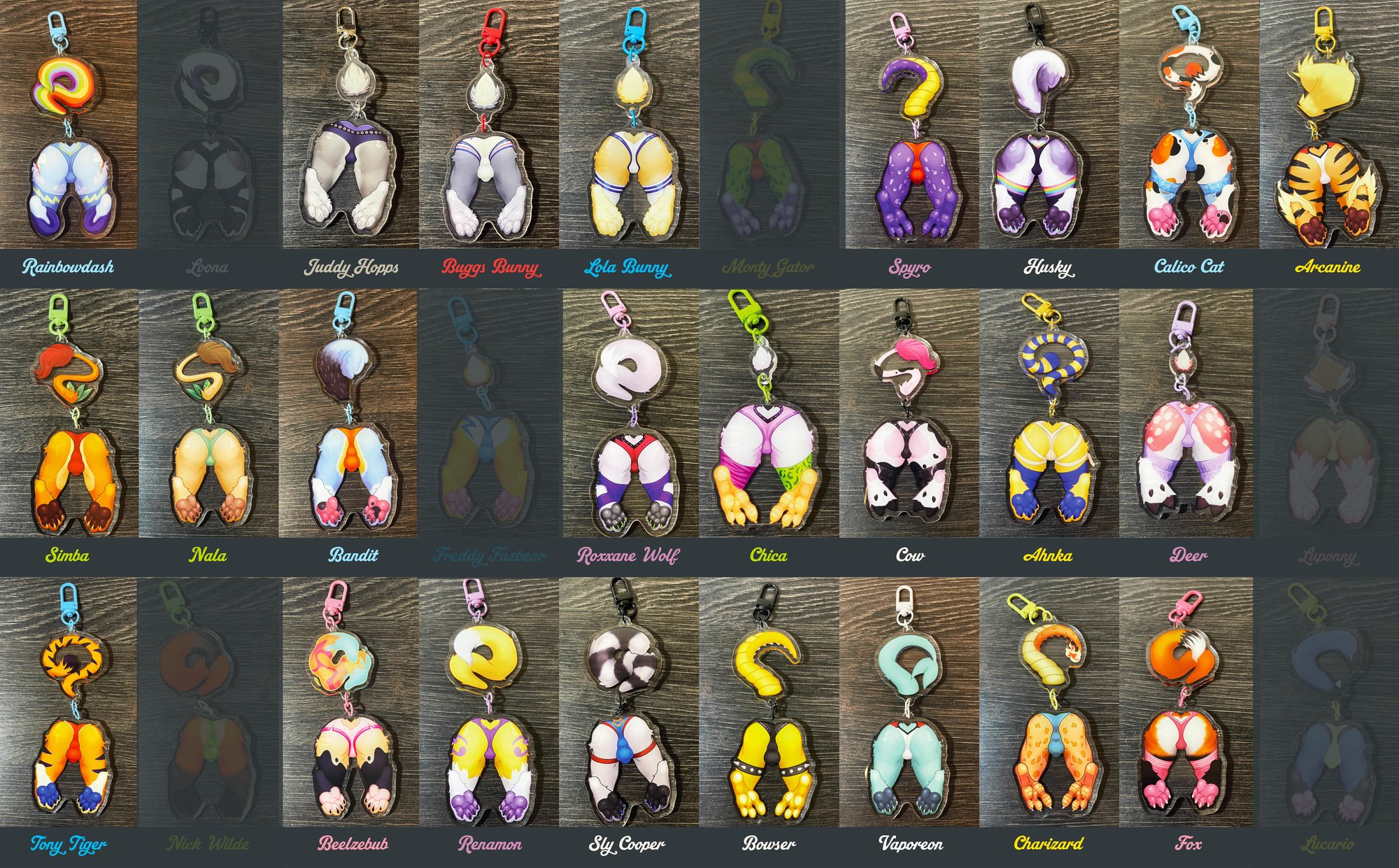 Llaveros con temática de pompis furras 🐾. La base mide 2.5 pulgadas Cola grande de 2” y la cola chica de 1.5”